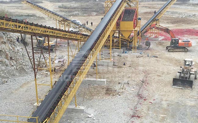 主要設備:振動給料機、重錘式破碎機、多層圓振動篩、皮帶機等